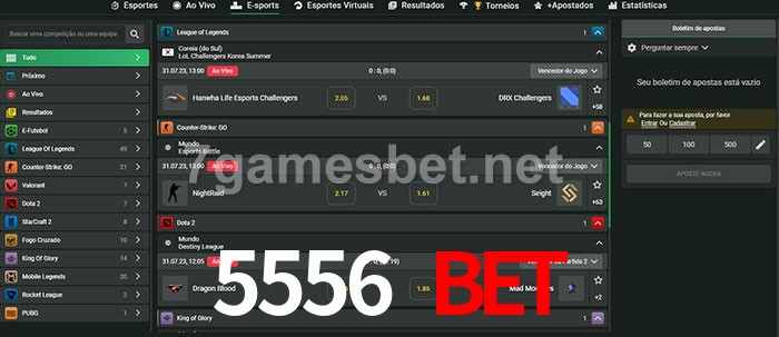 O 5556 Bet oferece uma grande seleção de opções de apostas em e-sports com probabilidades competitivas